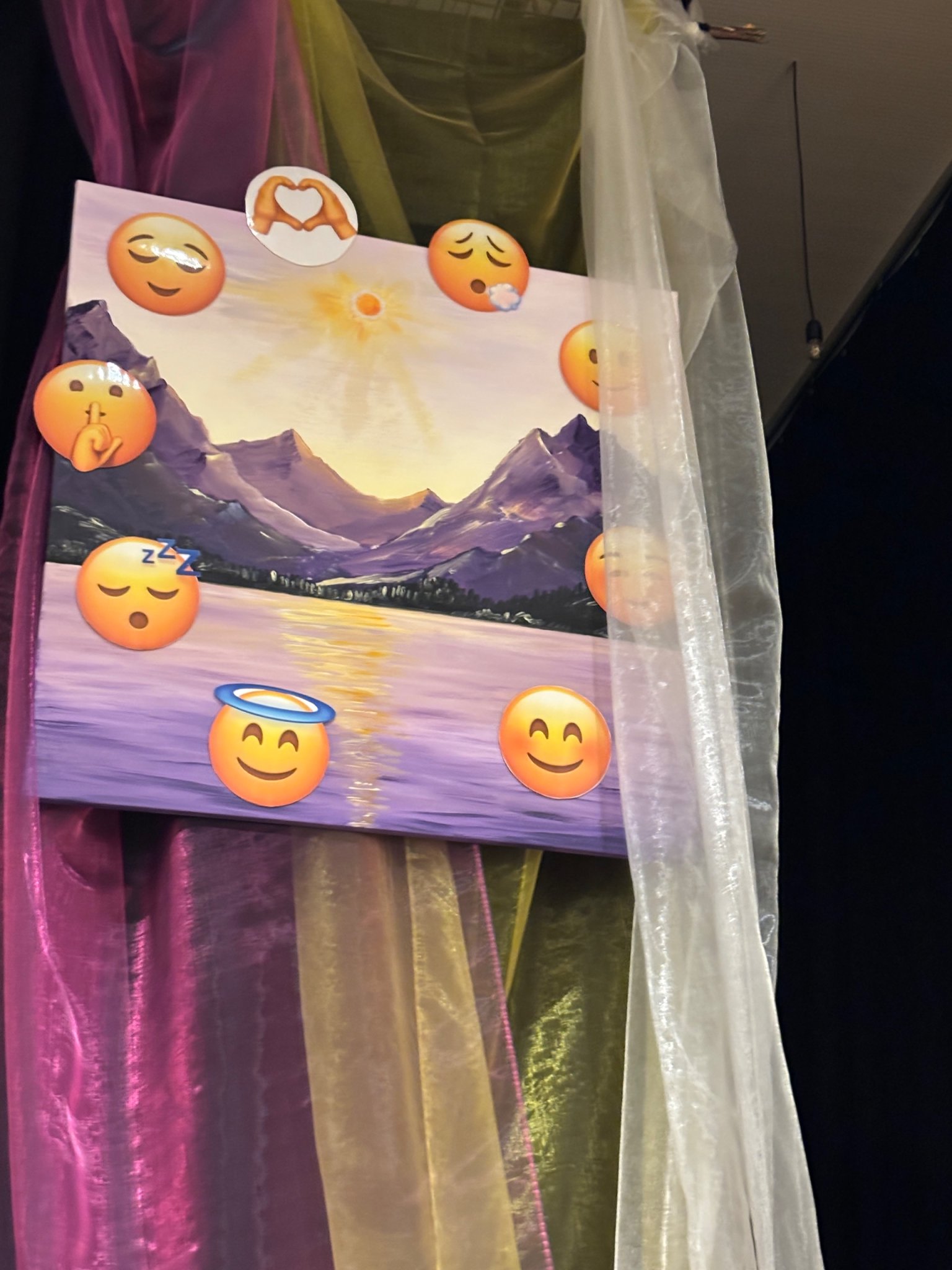 Gerne verschenken wir als Dekoteam das Bühnenbild . Die Emojis können ohne Probleme und mit kleinem Aufwand entfernt werden. Wer hat Interesse? Wen dürfen wir glücklich stimmen?